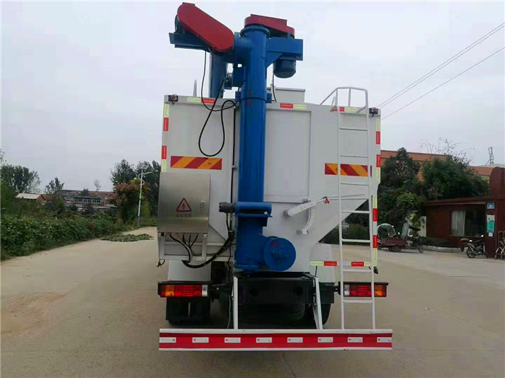 上裝罐體:罐體材質采用4mm優(yōu)質碳鋼板,整車3條絞龍,由3個5.5KW電機380V外接電源帶動,頂部絞龍用液壓控制舉升,可左右旋轉180°。罐體內分為肆個倉,可以獨立控制各分倉卸料順序和速度。